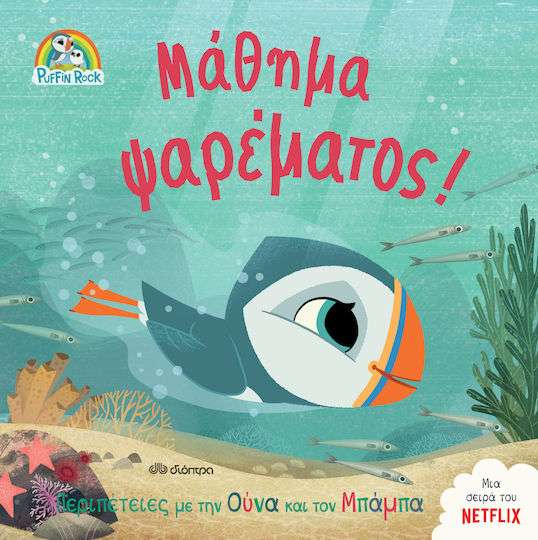 Ελάτε να παίξουμε στο μικρό νησί μας… Όταν η μαμά χτυπάει το φτερό της, ο μπαμπάς προτείνει στην Ούνα να τον βοηθήσει με το ψάρεμα. Εκείνη ενθουσιάζεται! Αλλά το ψάρεμα μπορεί να γίνει πολύ δύσκολη υπόθεση… Θα καταφέρει η Ούνα να πιάσει ψαράκια για την οικογένειά της; Γνωρίστε την παρέα της Ούνα και του Μπάμπα, εξερευνήστε το Πάφιν Ροκ και ζήστε μαζί τους νέες περιπέτειες! Τα βιβλία της σειράς: *Καληνύχτα, φεγγαράκι #1 *Γεια σου, αβγουλάκι #2 * Το πρώτο χιόνι! #3 *Μάθημα Ψαρέματος #4 Ανακαλύψτε όλη τη σειρά: Πάφιν Ροκ
